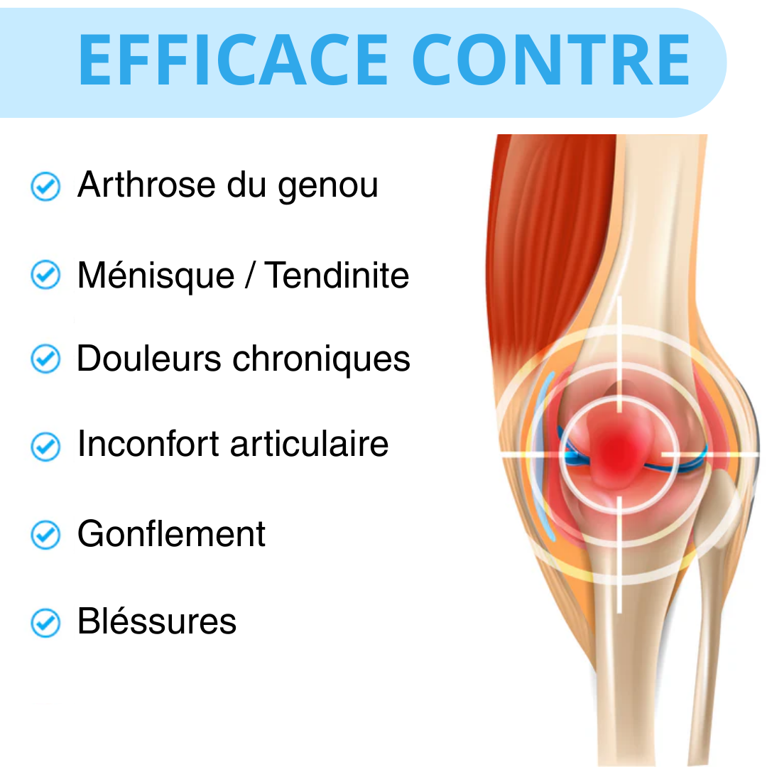Contrairement aux solutions classiques (repos, médicaments, attelles), VibraKnee™ agit directement là où la douleur naît.